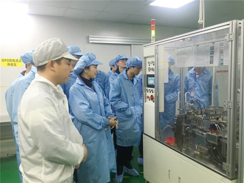 温科院师生首先参观了公司生产车间,为方便在参观过程中的提问和交流,公司综合部经理叶灿阳及生产部经理助理林福根带领师生走访了车间每个楼层,并且介绍了各个车间的生产流程以及产品工艺,同学们看到之前从未接触过的自动化设备,产生了浓厚的兴趣,纷纷提出自己的问题和想法。同时,温科院师生也与正在工作岗位上的往届毕业生做了交流。